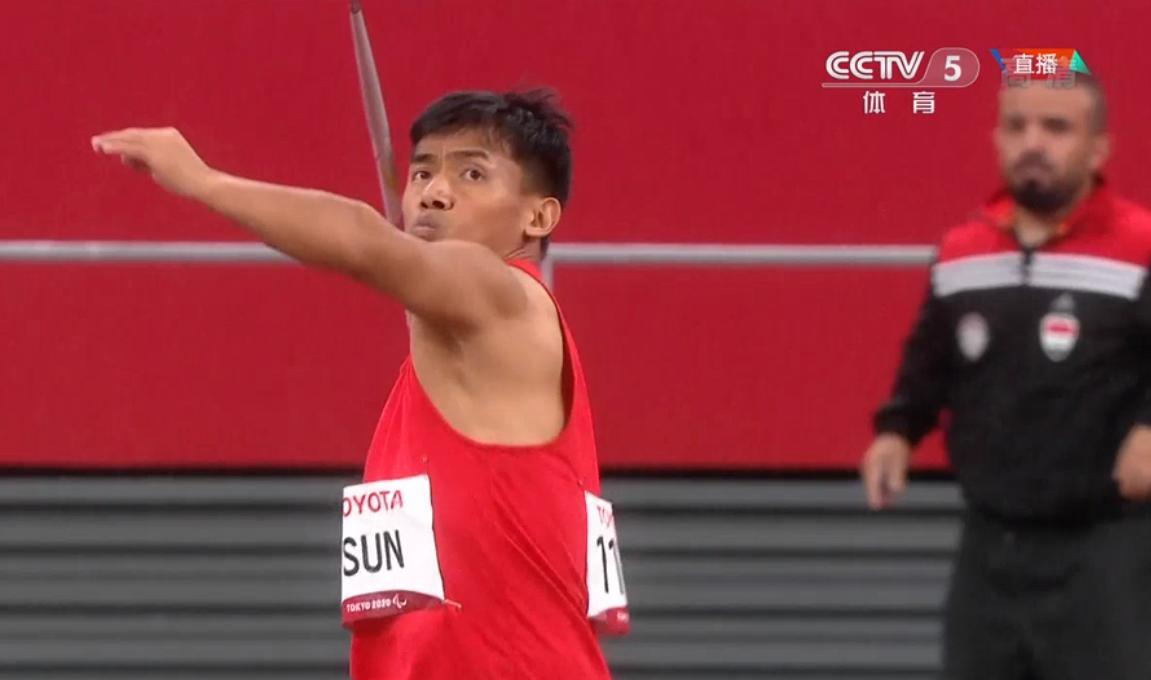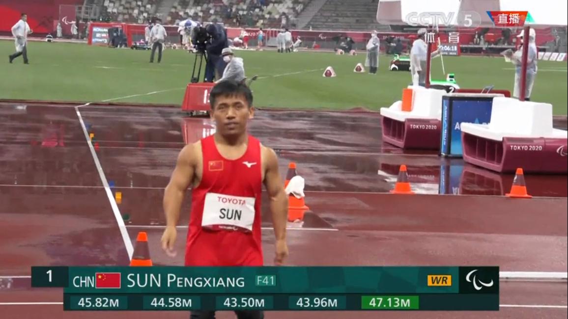 9月4日,在东京残奥会男子标枪F41级决赛中,中国选手孙鹏祥在第一投时便以45.82米的成绩稳居第一位,更在第五投时投出47.13米的成绩打破世界纪录,为中国代表团再摘得一枚金牌!