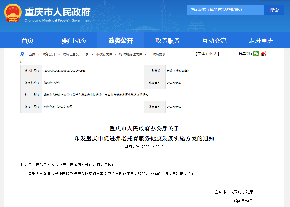 近日,重庆市政府办公厅印发了《重庆市人民政府办公厅关于印发重庆市促进养老托育服务健康发展实施方案的通知》,到2025年,重庆市将基本建成功能完善、规模适度、覆盖城乡的养老托育服务体系。日前,重庆市发展改革委员会对《重庆市促进养老托育服务健康发展实施方案》进行了详细解读。