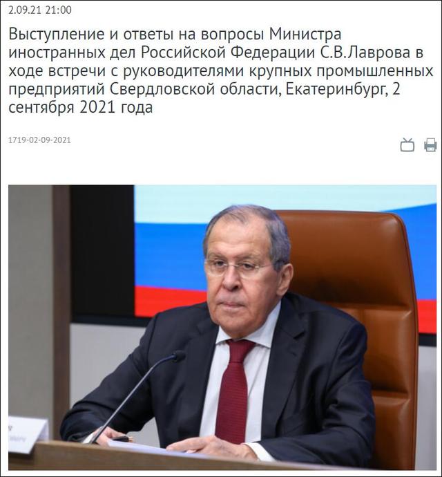 当地时间9月2日,俄罗斯外交部长拉夫罗夫在该国最重要的工业地区之一——斯维尔德洛夫斯克州首府叶卡捷琳堡市,会见该州大型工业企业负责人时作出了上述总结。