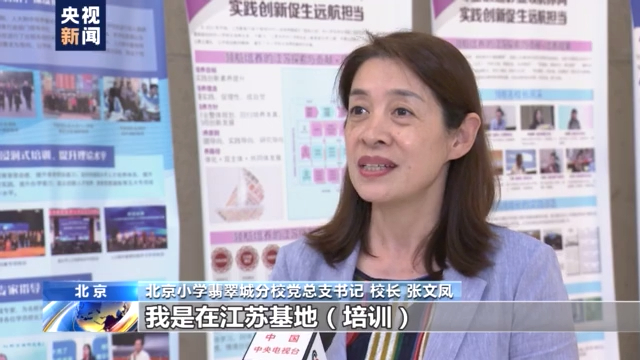 北京小学翡翠城分校党总支书记 校长 张文凤:我是在江苏基地(培训)配备了两位导师,除了在南京,我们还走进了扬州、苏州、南通等教育名市,跟一把手教育局长进行对话,还走进了9个省市的学员的学校,我最大的收获就是我的视野更加宽阔。
