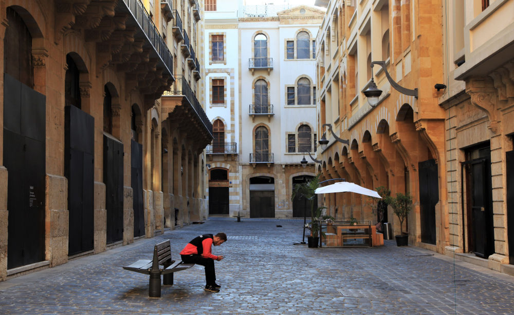 5月12日,黎巴嫩首都贝鲁特市中心商业区,行人稀少。(新华社记者刘宗亚摄)