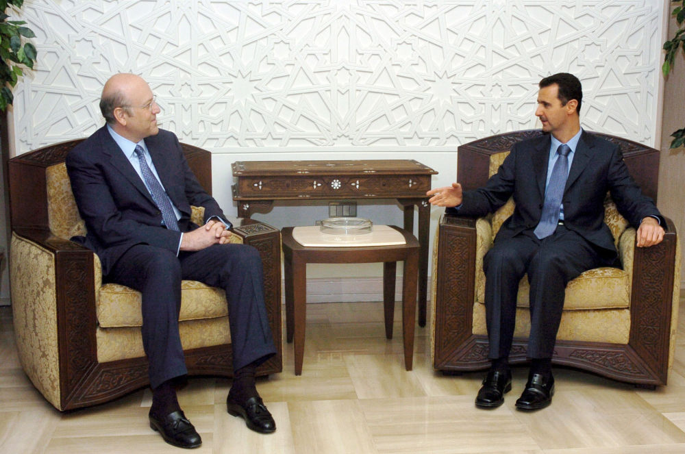 2005年5月4日,叙利亚总统巴沙尔(右)在首都大马士革会见到访的时任黎巴嫩总理米卡提。今年7月26日,米卡提获任总理并受权组阁。(新华社发)