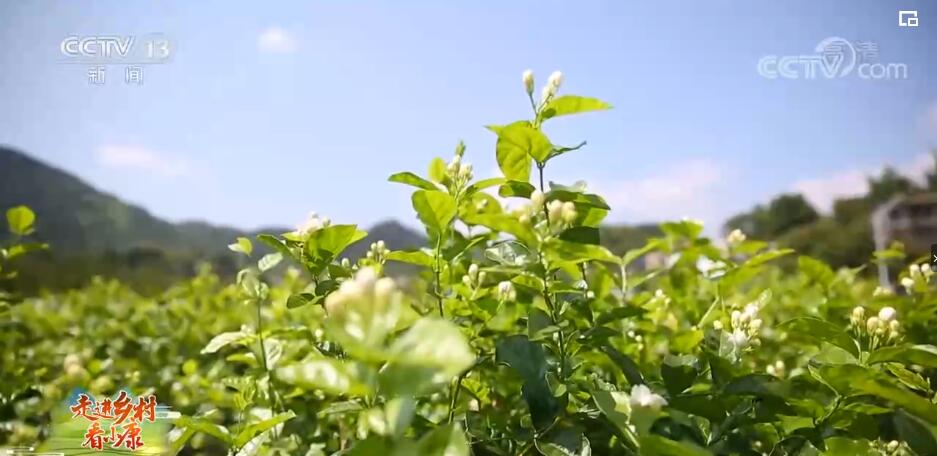 一望无垠的花田中,茉莉花开满枝头,花农们散落在花田间,将含苞待放的白色花朵轻轻摘下,再送到附近工厂,制作成远近闻名的茉莉花茶。