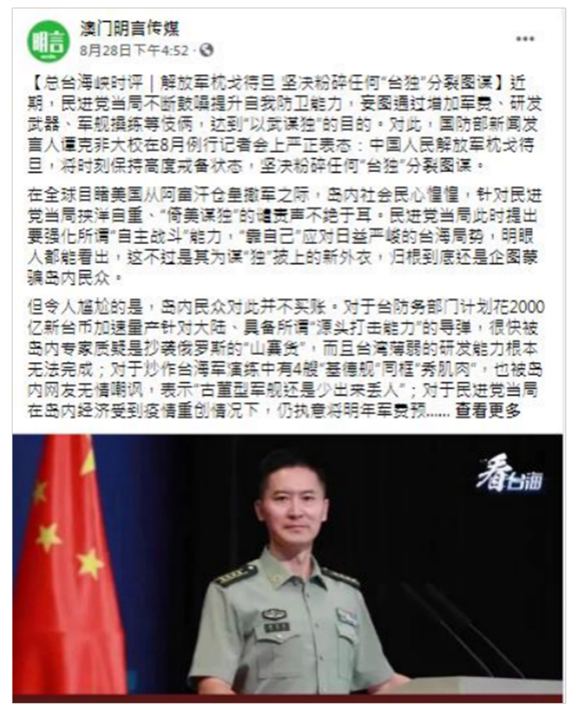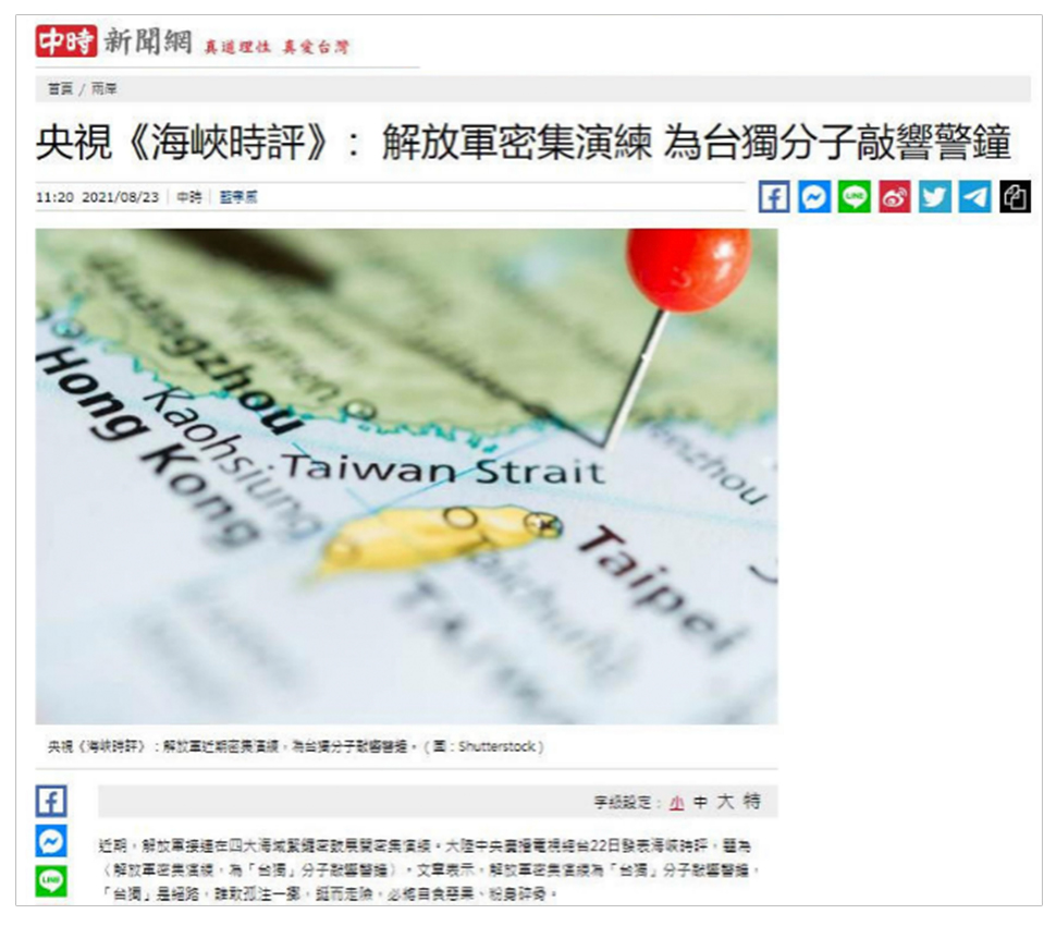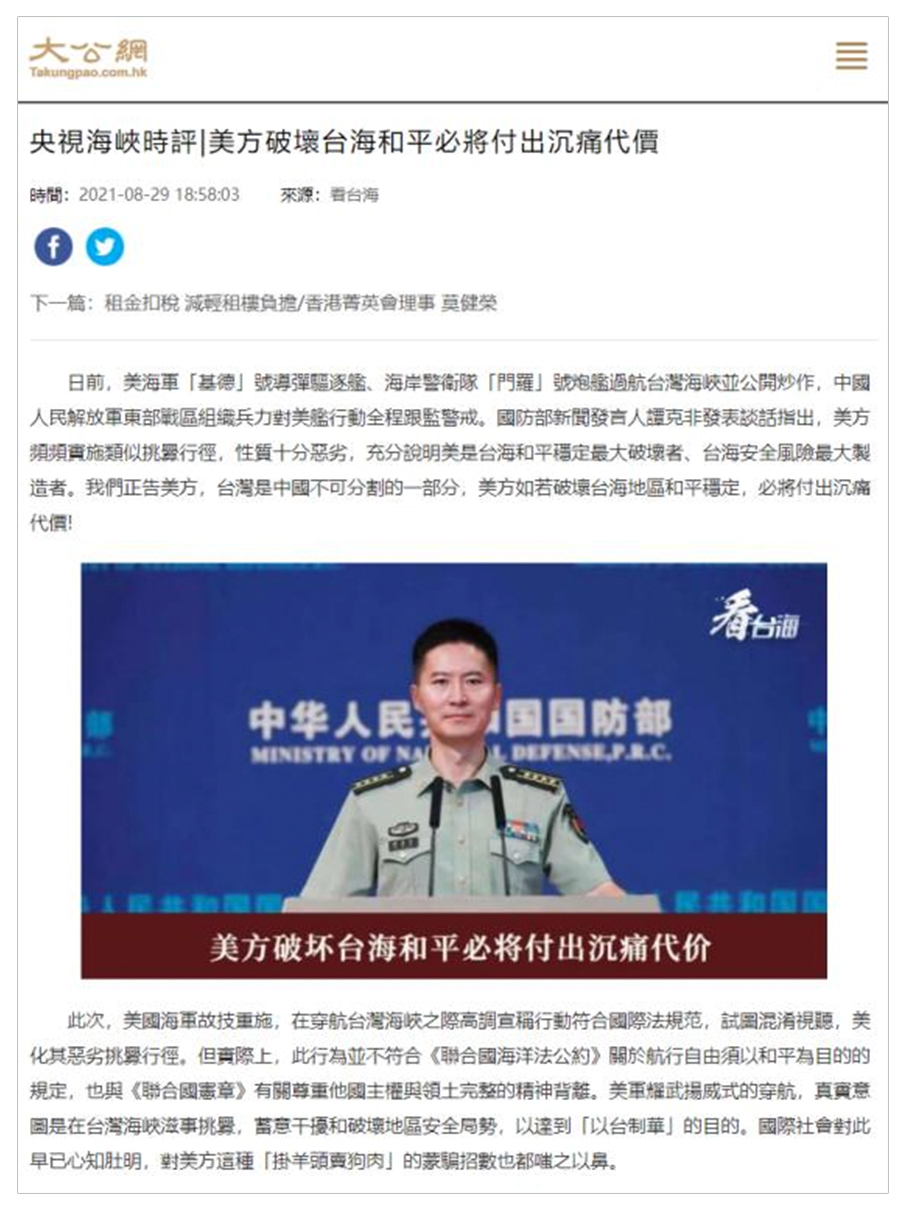 针对民进党当局的谋“独”图谋及美西方势力插手台海的险恶用心,中央广播电视总台台海之声近日连续播发6篇“海峡时评”。针对美军舰过航台湾海峡并公开炒作,播发《美方破坏台海和平必将付出沉痛代价》;针对日本自民党和台湾民进党搞所谓“2+2”安全对话,播发《奉劝日方悬崖勒马,立即停止在台海插手搅局!》;针对欧洲议会外事委员会不顾中方严正交涉通过涉台“报告”,播发《民进党当局拉拢外部势力 谋“独”的图谋注定失败》;特别是针对民进党当局的谋“独”行径,播发《民进党当局谋“独”行径是台海和平稳定的最大威胁》《解放军密集演练 为“台独”分子敲响警钟》《解放军枕戈待旦 坚决粉碎任何“台独”分裂图谋》。系列评论聚焦台海热点,深入揭批美国破坏台海和平的险恶居心、日方在台海插手搅局的丑陋行径、欧盟严重违反一个中国原则的错误做法和民进党意图通过勾结外部势力谋“独”的痴心妄想,展示大陆打击外部干涉势力、挫败一切“台独”分裂活动的坚定决心和强大实力。系列评论立场鲜明、鞭辟入里、针锋相对、重拳连发,引发海内外媒体广泛关注,阅读量超过210万。
