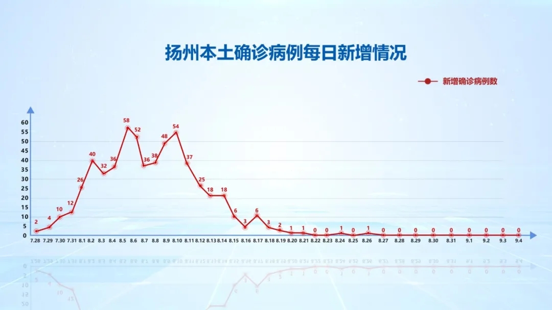 2021年9月4日0—24时,江苏扬州市无新增新冠肺炎确诊病例。新增出院11例。