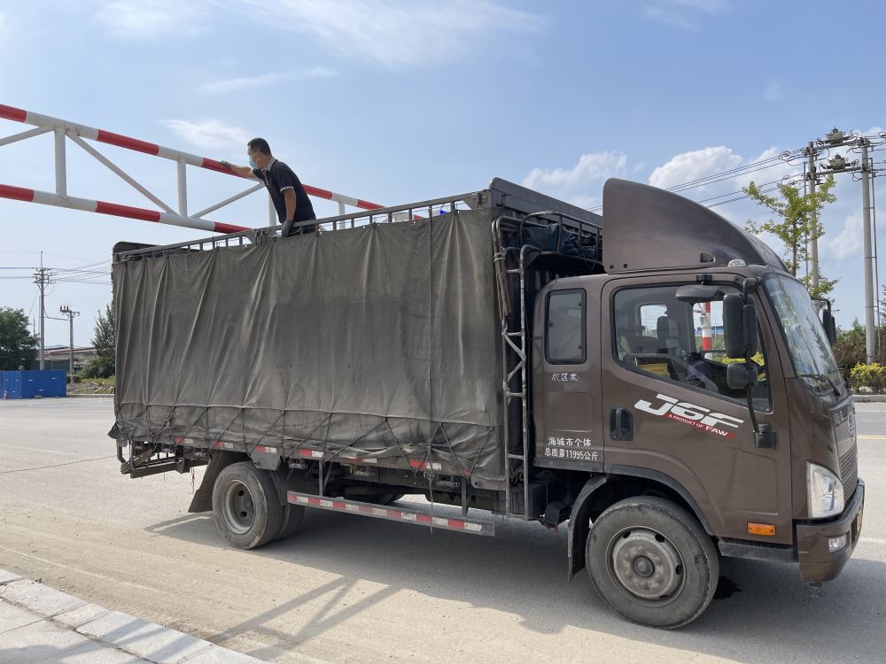 督查组前往营口市中小企业园暗访,在位于园区附近的新新路南端发现了一处限高杆。短短10分钟,有7辆货车经过,车身较高的货车必须以非常慢的速度通过。其中一辆货车上只有司机一人,不得不频繁下车观察、上车操作,反复确认车辆与限高杆高度,最后徒手爬上车,拆除车厢防雨布挡板后才勉强通过。