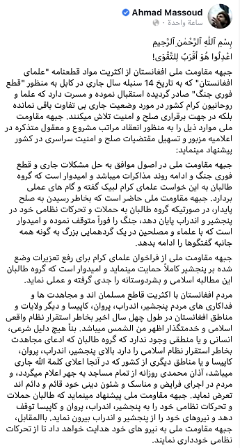 5日,阿富汗当地媒体报道,一些宗教神职人员举行了集会 ,要求塔利班和“民族抵抗阵线”停止当前的冲突,以谈判的方式寻求和平解决方案。
