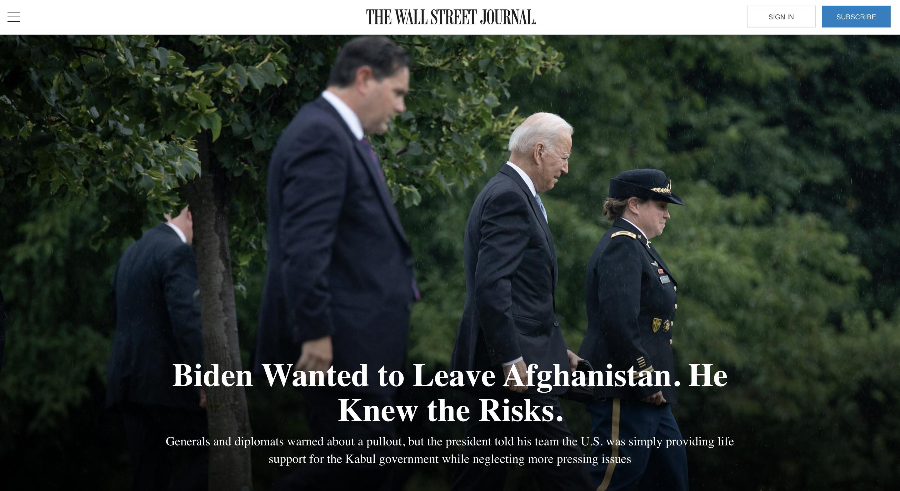 据《华尔街日报》报道,美军参谋长联席会议主席米利、美军阿富汗总指挥官麦肯齐、均在撤军前建议过拜登在阿富汗保留一支约2500人的军队,同时通过外交手段达成某种协议,以此来给美军在阿富汗的存在“续命”。但在美国政客新闻网看来,拜登作为政治人物,有责任把他的承诺“兑现”。