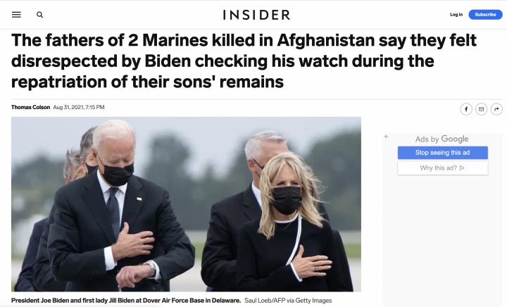 在喀布尔机场阵亡的美海军陆战队上士胡佛的父亲表示,这是他这辈子见过的最不尊重他人的行为。赖利的母亲则对拜登爆了“粗口”。