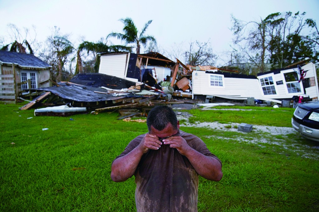 飓风“艾达”登陆美国路易斯安那州已一周,图为4日当地一民众站在自己被飓风摧毁的房屋前。