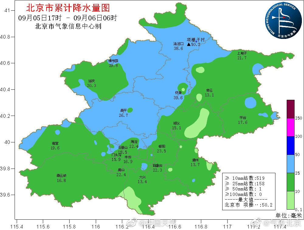 北京今晨(6日)发布暴雨蓝色预警,预计当前至10时,昌平、顺义、海淀、丰台、朝阳、石景山、东城、西城、门头沟东部、房山东部、延庆东部、密云西部及大兴北部的部分地区累计雨量可达50毫米以上。