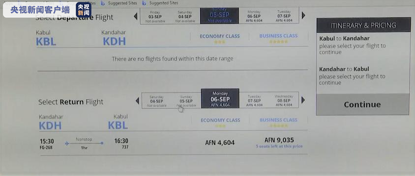 总台报道员奥贝德介绍,5日,阿富汗阿里亚纳航空公司恢复了从喀布尔飞往其他一些省份的境内航班。登录他们的官方网站后,可以查看到分别从喀布尔飞往坎大哈、赫拉特和马扎里沙里夫的航班。例如,6日有从坎大哈飞往喀布尔的航班,旅客可以在他们的网站上预订机票。