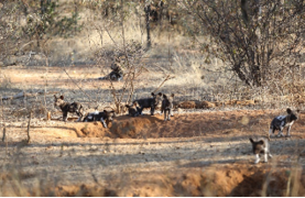 △一群非洲野狗幼崽在窝外面嬉戏。非洲野狗倾向于在不起眼、甚至破败的地方建窝生崽,以确保没有狮子等其他食肉动物对幼崽造成威胁。