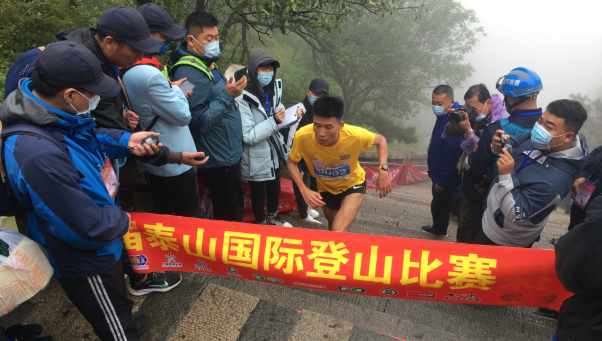 今天上午,第三十五届泰山国际登山比赛在泰山脚下的岱庙厚载门鸣枪开赛。本届泰山国际登山比赛,设置男、女两个组别,参赛年龄段为18—45岁,共1000名选手参赛,其中300名运动员,700名登山爱好者。本届登山比赛,男子组终点设在南天门,全程约8.1公里,台阶5695个,相对高度1255米,经过激烈的角逐,选手戚振飞历时57分02秒成功登顶,获得男子组冠军;女子组终点设在中天门,全程约5.4公里,台阶2399个,相对高度675米,选手周昊以39分31秒,获得女子组冠军。