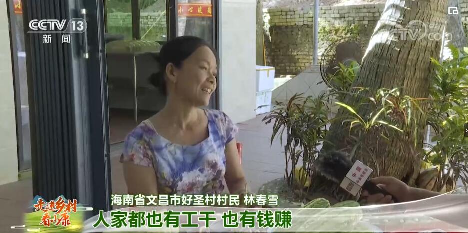海南文昌市好圣村村民 林春雪:我们现在生活的很幸福,你看一下我们整个村庄每家每户都有新房子住,人家都也有工干,有钱赚,肯定是很幸福的。