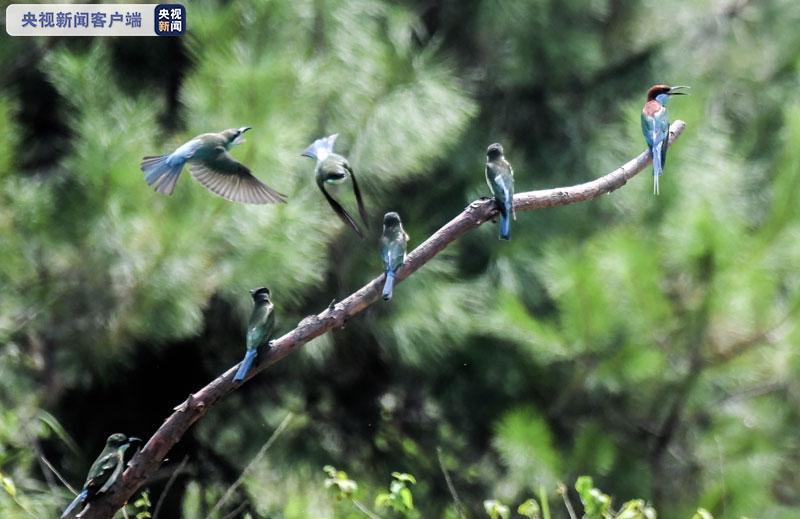 日前,有摄影爱好者在江西省南昌市新建区厚田乡梅花村的树林中发现,被誉为“中国最美小鸟”的蓝喉蜂虎在这里觅食嬉戏,成了当地一道亮丽的风景。