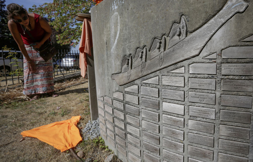 这是8月10日拍摄的加拿大北温哥华“圣保罗印第安寄宿学校”旧址内刻有失踪原住民儿童名字的纪念碑。加拿大不列颠哥伦比亚省的三个原住民部族10日宣布,将对位于北温哥华的“圣保罗印第安寄宿学校”旧址展开调查。(新华社发,梁森摄)