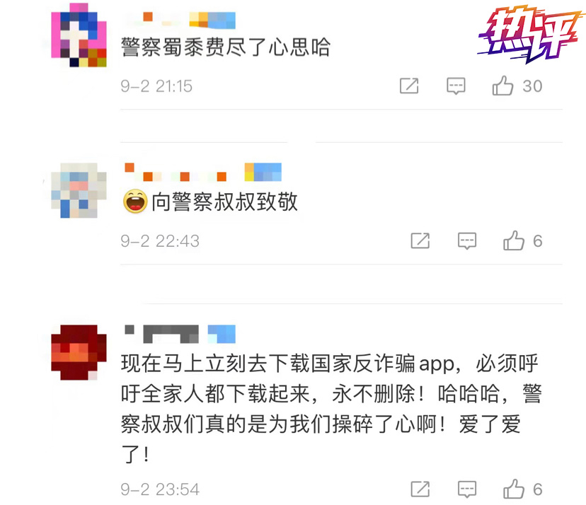 针对老陈的好做法,有网友赞道:“警察蜀黍费尽了心思哈。”在点赞之余,我们不妨赶紧下载国家反诈中心App,因为宣传反诈,人人有责;反诈有成效,人人都受益。