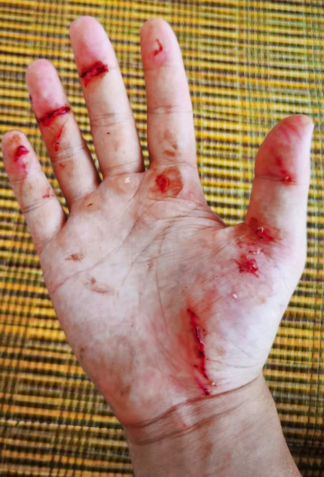 被荆棘将手掌划得血肉模糊