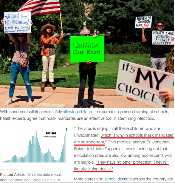 而随着美国各地迎来开学季,广大尚未接种疫苗的儿童成了成年人胡作非为的最直接、最无辜受害者。一些家长甚至公然反对学校强制孩子们在校园和教室内佩戴口罩。有卫生专家直言,没有任何保护的孩子“简直就是活靶子”。