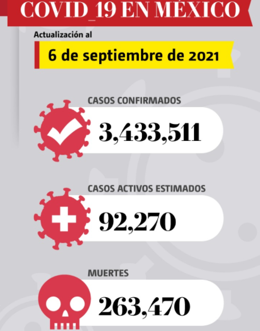 当地时间9月6日,墨西哥卫生部宣布,截至9月6日晚7时,墨西哥新增新冠肺炎确诊病例5127例,累计确诊3433511例;新增死亡病例330例,累计死亡263470例。(总台记者 盛嘉迪 吕兴林)
