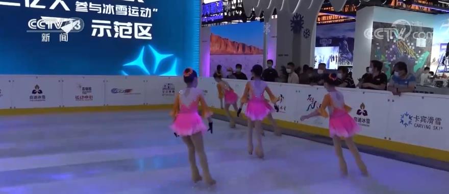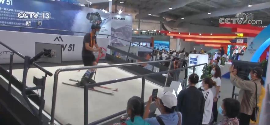 在冰雪运动示范区,这个冰场吸引了不少观众体验,冰场占地面积230平方米,由环保的二氧化碳制冰技术打造。这台由奥地利展商带来的滑雪机也吸引了不少体验者。