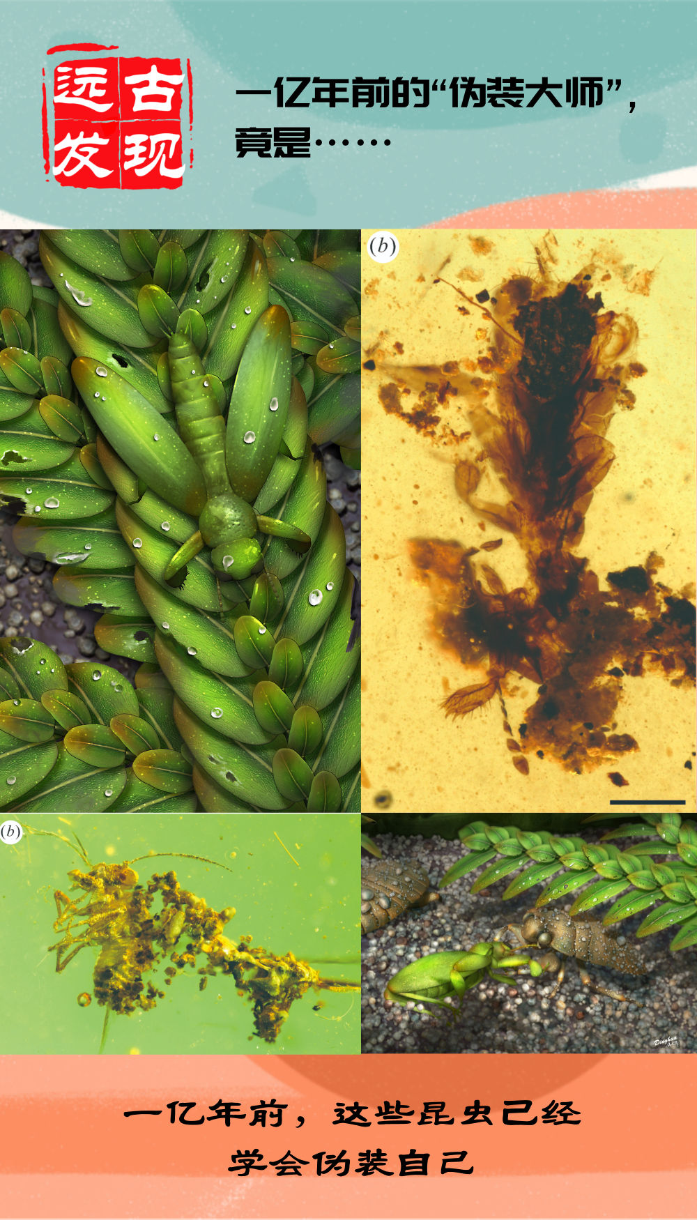 领导此项研究的中科院南古所研究员王博介绍,在自然界中,为了躲避天敌或更高效地捕捉猎物,许多昆虫拥有奇特的“伪装术”,其中就包括拟态植物和覆物伪装。拟态植物是指昆虫模拟其生活环境中的植物以达到伪装的效果,覆物伪装则是指昆虫主动利用环境中的各种材料遮盖体躯以伪装自己。