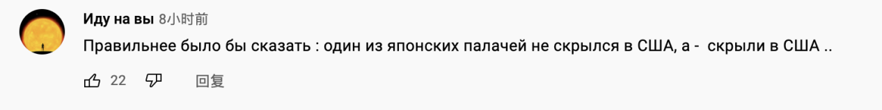 网名为“Иду на вы”的俄罗斯网友评论说:“更准确地说,其中的一名日本刽子手并不是被日本藏匿,而是被美国藏匿。”