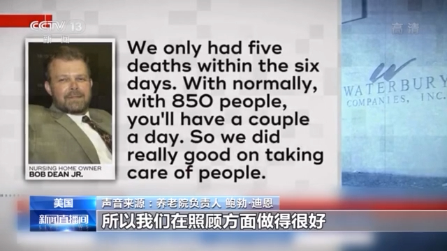 养老院负责人 鲍勃·迪恩:6天内我们只死了5个人,一般来说,将近850个住户,可能每天会有几个(人死亡),所以我们在照顾方面做得很好。