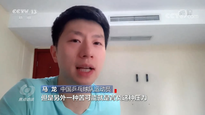中国乒乓球队运动员 马龙:其实职业运动员都苦,但是另外一种苦是背负压力,所以在比赛里或者平时训练里,会让大家感觉这哥们训练太严肃了,怎么不说话?让大家感觉人很重,是这一种心态上的煎熬。