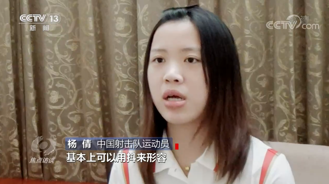 中国射击队运动员 杨倩:因为心理压力过大,人、枪晃动特别大,可以用“抖”来形容。
