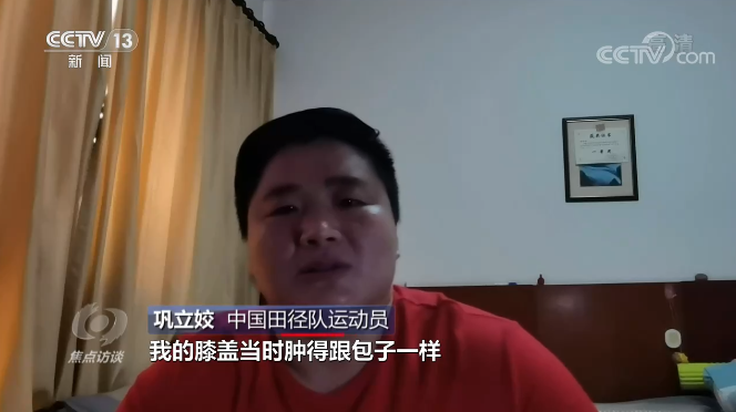 中国田径队运动员 巩立姣:我刚知道奥运会延期的时候,当时我的膝盖肿得跟包子一样,全是积液。