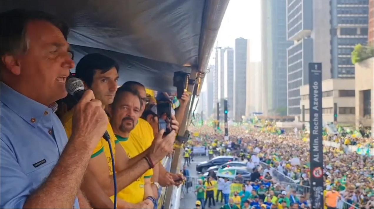 △巴西总统博索纳罗在圣保罗市集会现场发表演讲(图片来源:巴西旗手传媒集团)