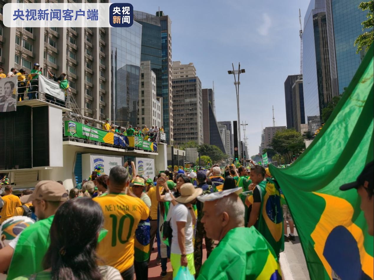 △巴西总统博索纳罗的支持者在圣保罗市保利斯塔大街集会(总台记者自摄)