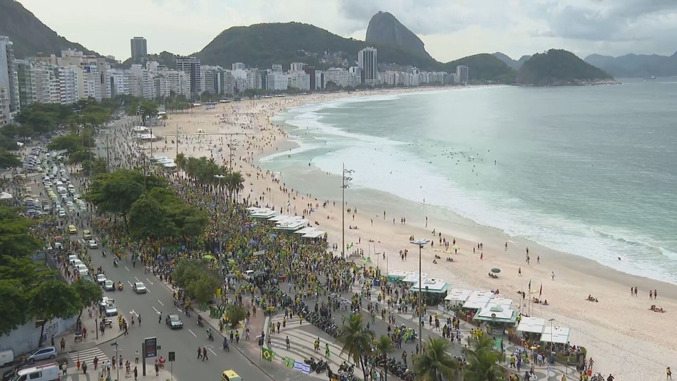 △游行民众在里约热内卢科帕卡巴纳海滩集会(图片来源:巴西环球传媒集团)