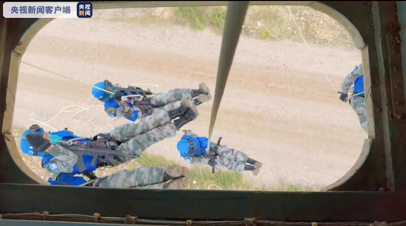 “共同命运-2021”国际维和实兵演习快反分队指挥员庞希涛介绍,此次演习,在绳索机降的方式上进行了探索和创新。分别在飞机的机舱、尾门和舱腹,同时挂上八根绳索,八路队员同时从机上进行索降,而后快速地投入战斗。为模拟维和行动中的复杂地形,这次也专门挑了有斜度的坡上进行机降。模拟全新的地形、全新的环境。