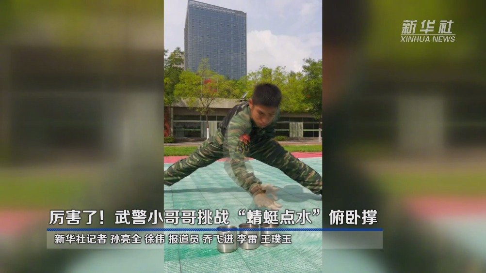 【厉害了!#武警小哥哥挑战蜻蜓点水俯卧撑#】近日,武警山西总队晋中支队官兵挑战“蜻蜓点水”俯卧撑,兵哥哥在做俯卧撑的同时,用手去点杯子里的水,可单手点水和双手点水,并且还可增加杯子的数量,进一步提升技术难度,没有受过专业训练请不要轻易模仿。网友:我用双手给你点赞!(记者孙亮全 徐伟) 新华社的微博视频