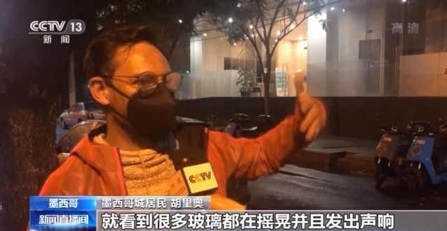 墨西哥城居民 维克多:我在街上听到几声爆炸,我觉得应该是几个变压器炸了。地震波持续了大概30到40秒,我当时正在街上开车,当时地震真的摇晃很厉害,我被迫把车停下,离开车,躲到安全的地方。