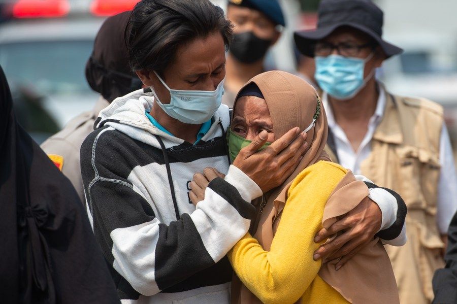 9月8日,在印度尼西亚唐格朗,火灾遇难者家属难掩悲痛。(新华社发)