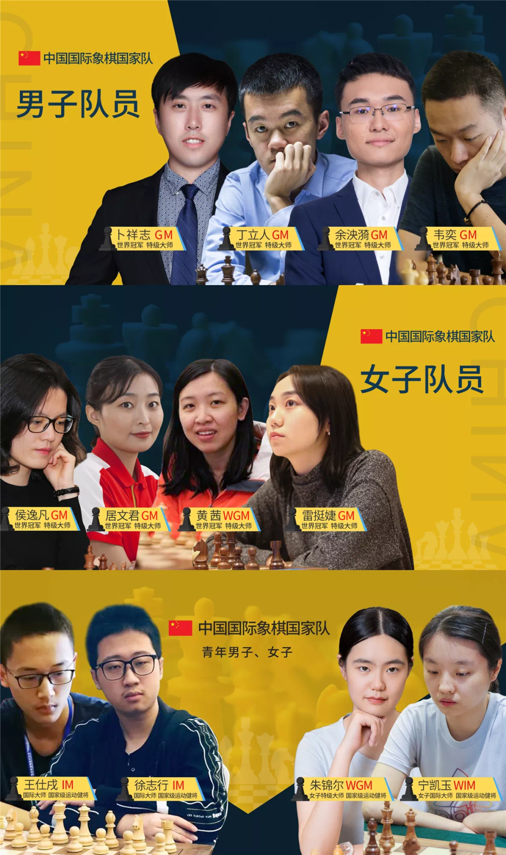 中国队本届奥赛尽遣精英出战,男棋手为丁立人、韦奕、余泱漪、卜祥志,女棋手为侯逸凡、居文君、雷挺婕、黄茜,青年男子棋手为徐志行和王仕戌,青年女子棋手是朱锦尔和宁凯玉。在当日的比赛中,他们以一个5.5:0.5、两个5:1分别击败澳大利亚、蒙古国及印度尼西亚队,开局获得三连胜。