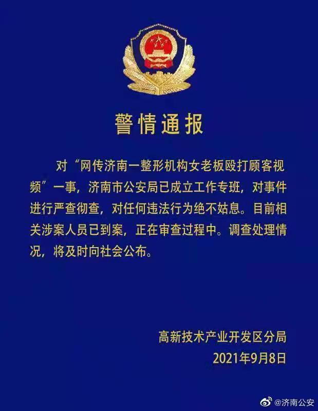 记者从济南警方获悉:对“网传济南一整形机构女老板殴打顾客视频”一事,济南市公安局已成立工作专班,对事件进行严查彻查,对任何违法行为绝不姑息。目前相关涉案人员已到案,正在审查过程中。调查处理情况,将及时向社会公布。(总台记者 张明)