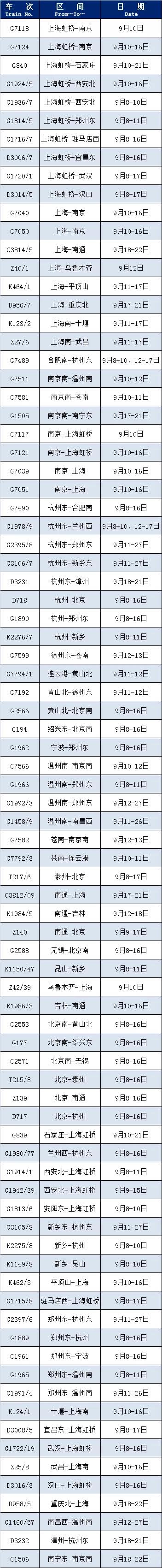 随着江苏疫情中风险地区清零,疫情防控形势有所好转,长三角铁路客流迅速回暖。为满足旅客出行需求,部分车次陆续恢复开行,这里给大家整理了近期恢复开行列车的信息: