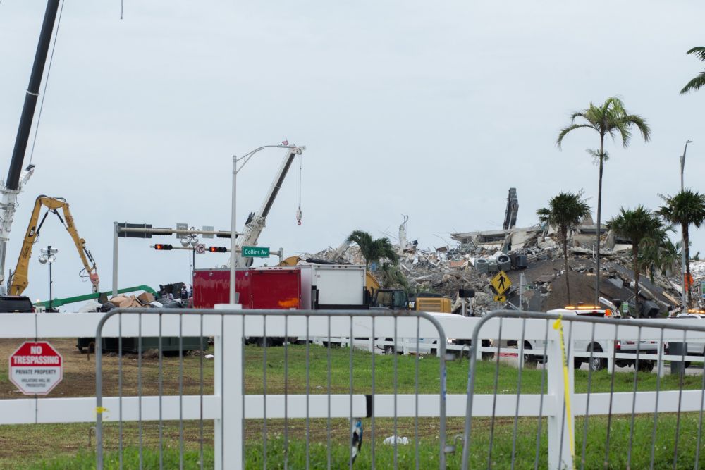 7月6日拍摄的美国佛罗里达州迈阿密-戴德县的住宅楼坍塌事故现场。(新华社发,莫妮卡·麦克盖文摄)