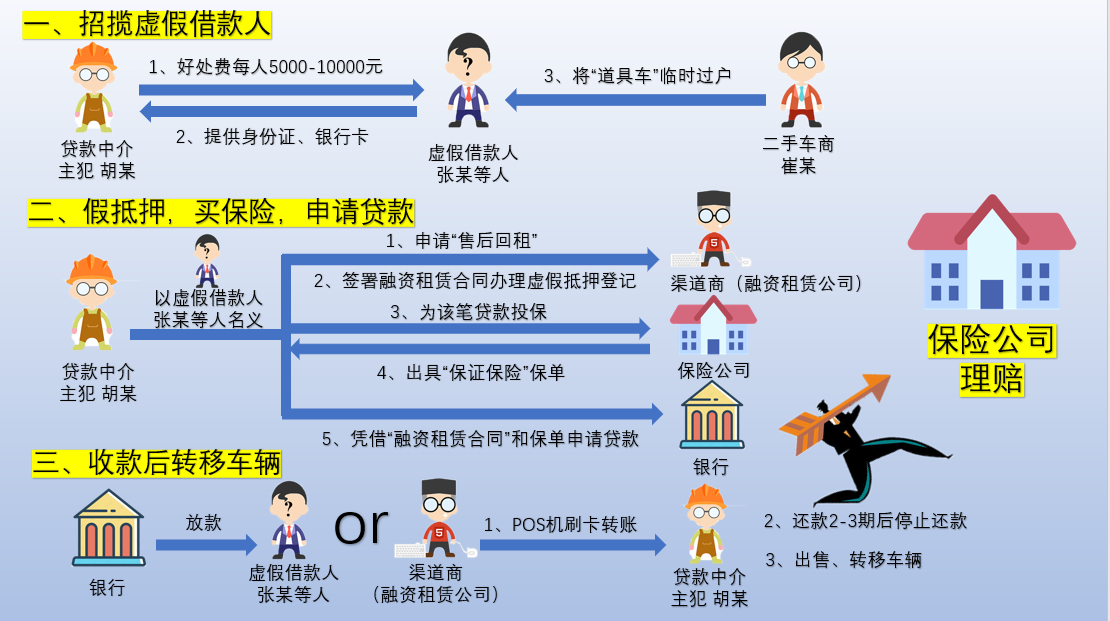警方发现,此类犯罪行为还涉及租车贷、保单贷、房抵贷等多类信贷业务。经查,自2017年以来,以胡某、吴某、王某、丁某等人为首的多个犯罪团伙为牟取非法利益,通过互联网招揽了近百名像张某这样的虚假借款人,而后伙同个别二手车商、金融机构员工,通过伪造机动车抵押登记记录,伪造房产证、不动产抵押登记证明,临时过户他人寿险保单等方式,虚增虚假借款人的信用资质,并以虚假借款人名义投保个人履约、信用保证险,进而向金融机构申请办理贷款。待金融机构放贷后,上述团伙在履行小额还款义务后拒不还款,触发理赔而使保险公司蒙受巨额损失。