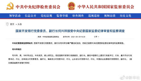 【国家开发银行党委委员、副行长何兴祥接受中央纪委国家监委纪律审查和监察调查】据中央纪委国家监委网站消息,国家开发银行党委委员、副行长何兴祥涉嫌严重违纪违法,目前正接受中央纪委国家监委纪律审查和监察调查。