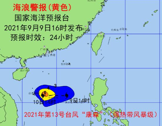 记者从自然资源部国家海洋预报台了解到,今天(9月9日)15时,今年第13号台风“康森”(强热带风暴级)的中心位于距离海南省三沙市(西沙永兴岛)东偏南方向约445公里的海面上,国家海洋预报台今天下午发布海浪黄色警报。