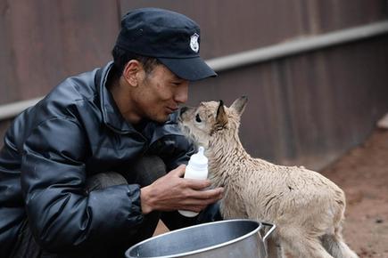 在可可西里索南达杰保护站,修建了野生动物救助中心。巡山队员们义务当起“奶爸”,照顾着与羊群走失、失去“妈妈”的藏羚羊幼仔。