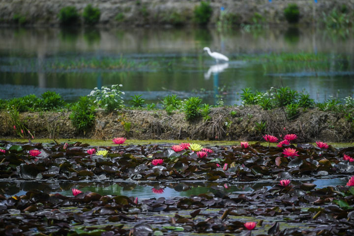 图为5月7日浙江省湖州市吴兴区东林镇东方村,水田里种植的睡莲盛开。当地积极推进“农文旅一体化”发展模式,吸引游客前来体验观光。新华社记者 徐昱 摄