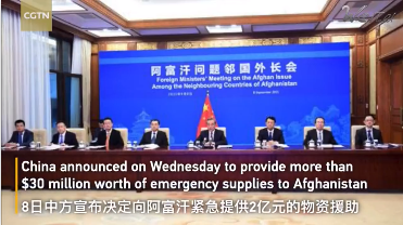 据悉,中国通过南南合作基金和其他方式等不断支持联合国人道主义事务。9月8日,中方在阿富汗邻国外长会上又宣布:将向阿富汗人民提供价值2亿元人民币的紧急救援物资。其中包括:粮食、越冬物资、疫苗和药品等。