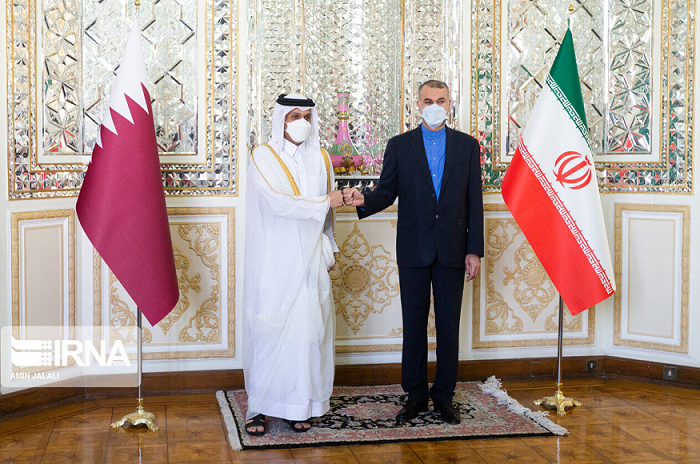 △左为卡塔尔外交大臣,右为伊朗外长(图片来源:伊通社)